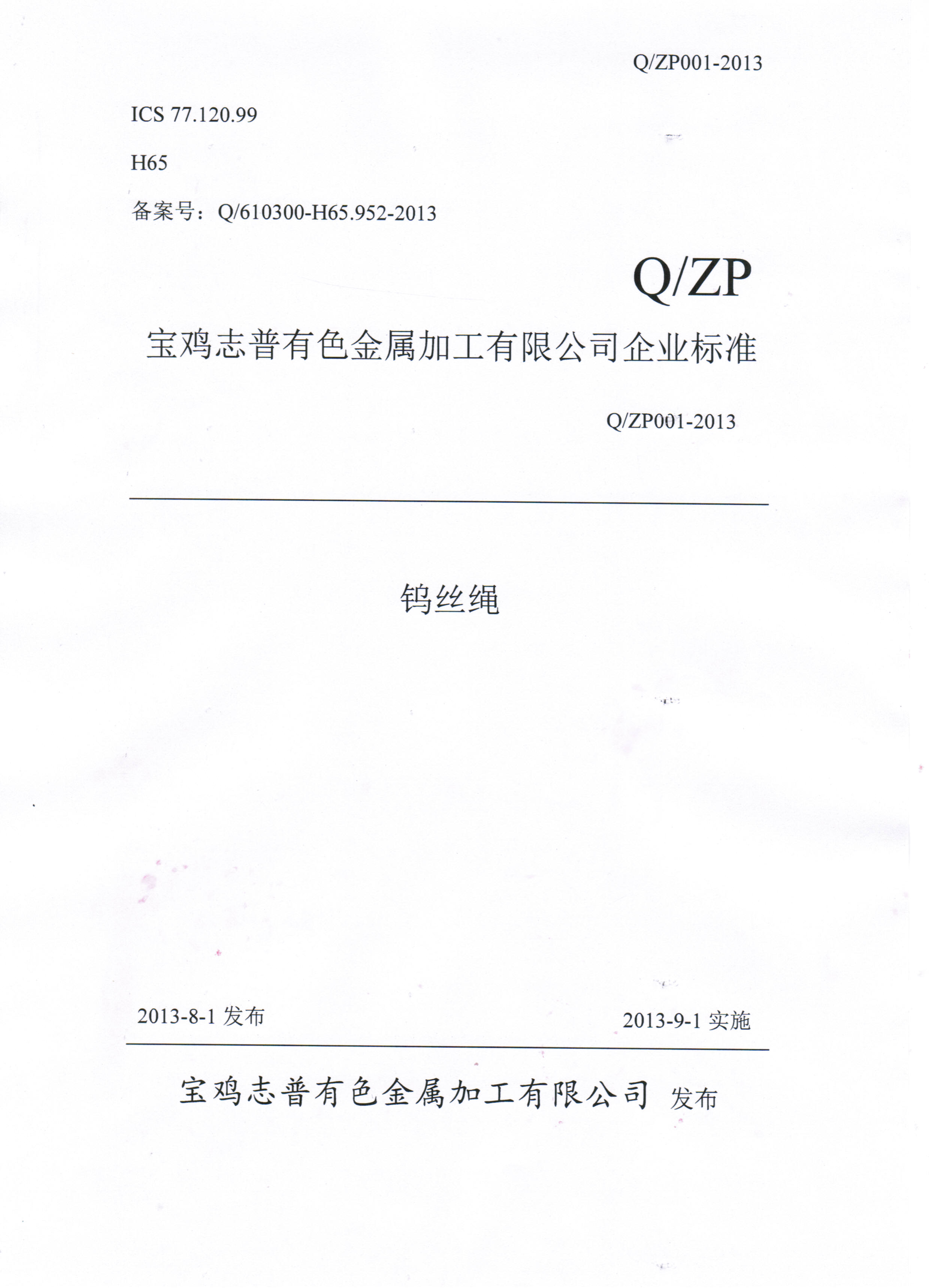 志普鎢絲繩企業(yè)標(biāo)準(zhǔn)